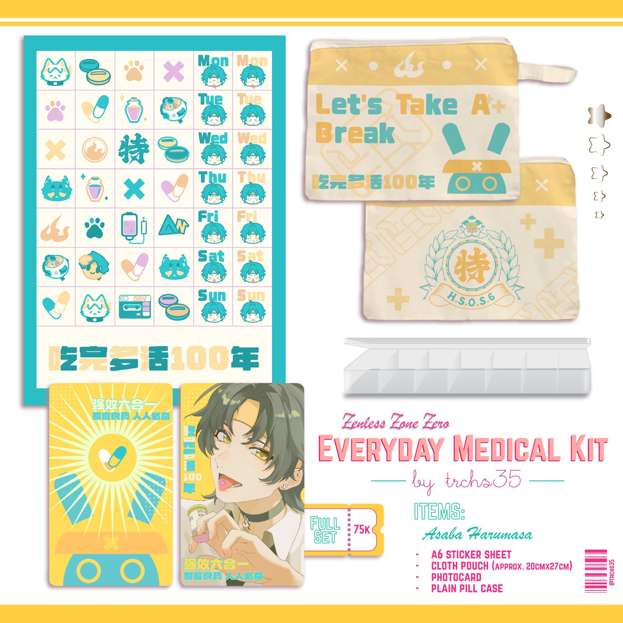 Set of pill case, A6 sticker sheet, zipper pouch & photocard